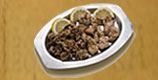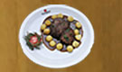 croquetas de papa y ciboullete Grisette Papas y arvejas salseadas a la manteca Pimienta Salsa demiglace, pimienta negra molida al vino jerez y