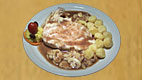 Eduardo VII Salsa demiglace, jamón cocido, champignones, paté, crema de leche y papas noissette Campestre Papas parissiene, zanahorias y arvejas Strogonofp Champignones, cebolla, mostaza, crema de leche, demiglace, arroz blanco Marsala Vino Marsala, demiglace, papas noissette Saltimboca Jamón crudo, salvia, manteca, vino blanco con papas noissette Cazadora Jamón, champignones, salsa de tomate, papas noissette Vanesa Crema de espinacas con arroz blanco Al Verdeo Vino blanco, ajo, verdeo, caldo y papas noissette Provenzal Ajo, perejil, aceite, vino blanco, caldo, papas noissette Al Ajillo Ajo, aceite, guindilla, vino blanco, caldo, papas noissette Light CTomate Natural, Aceite de Oliva y queso Blanco Napolitana Grissette
